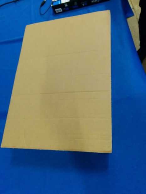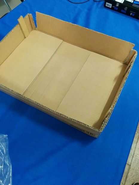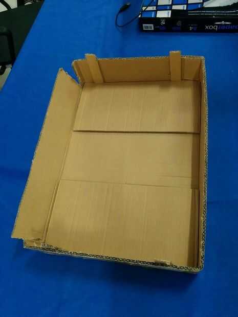 Utilizamos una gran caja de cartón que cortamos en aproximadamente de 8cm para simular nuestro tablero. La parte superior del tablero de tabla se ha hecho de un pegamento de la lámina de cartón con una lámina de poliestireno para que sea un poco más fuerte.