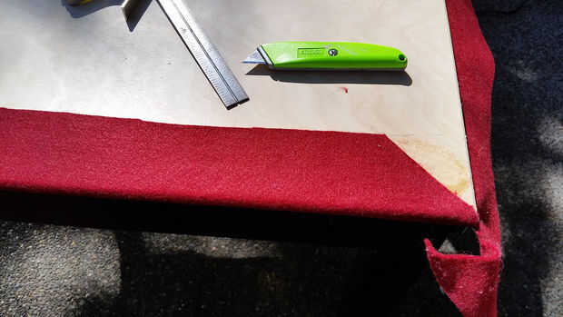 - Este ensamble con soportes en L pero sin cola todavía. Si quieres que se vea más bonito, router empotrable bolsillos para los soportes para que no vean una vez que está cubierto de fieltro.