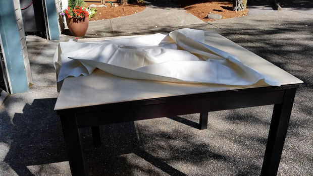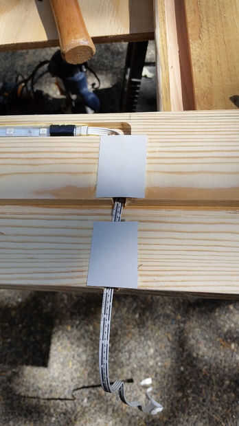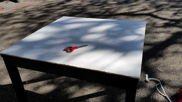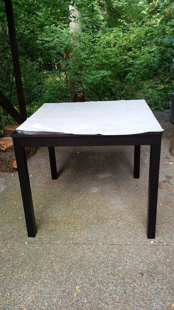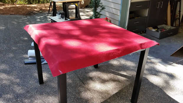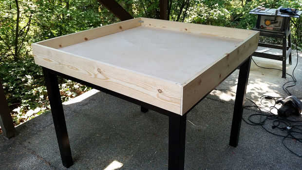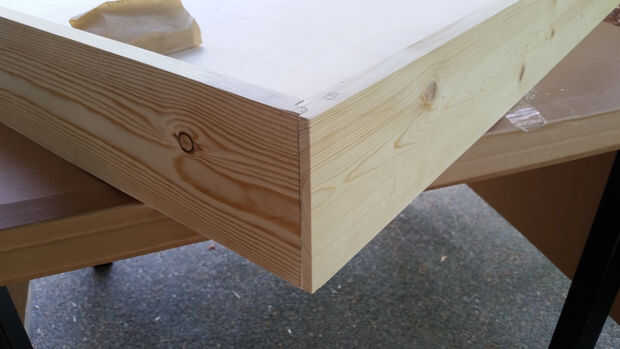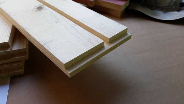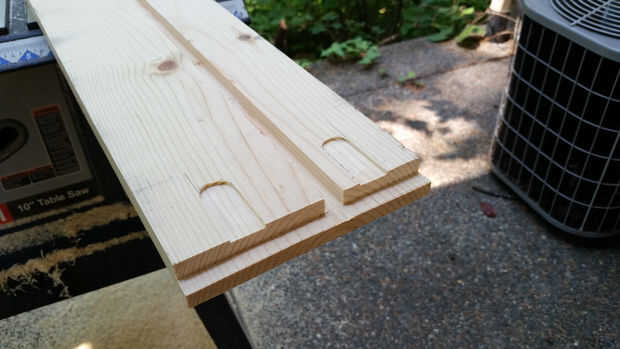 - Medida de las tablas de 1 x 6" para caber alrededor de la mesa, con un 1/4 espacio de sobra por todos lados así que pueden deslizarse fácilmente sobre la parte superior.