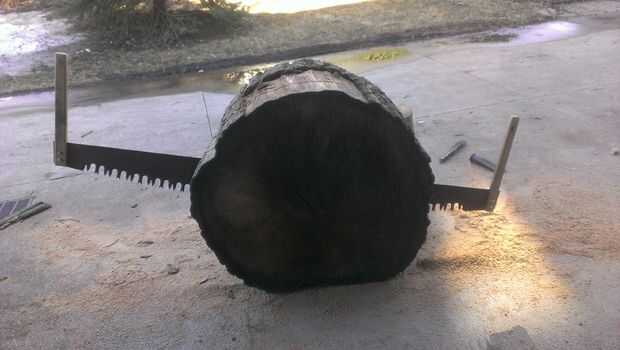 A menos que tenga una barra de motosierra bastante para conseguir a través de la pieza, tendrás que ser creativo.