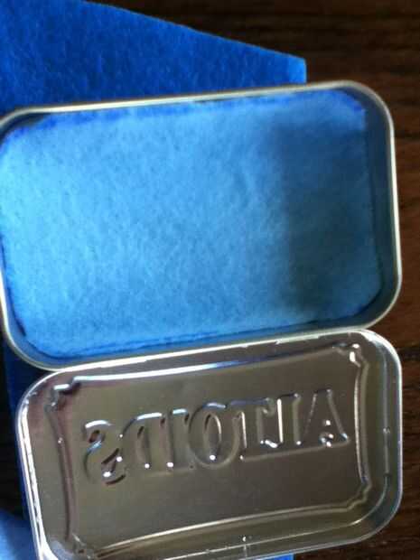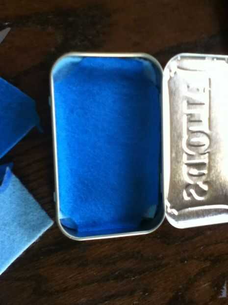 Tomar tus 3 piezas de fieltro y trazar el contorno de la lata en cada uno. Corte cada uno hacia fuera, pero la tercera chuletas corte en cada esquina (véase el cuadro. Luego poner cinta de doble cara en la parte inferior de la lata, coloque un pedazo de fieltro, ponga cinta en ese sentido, coloque la segunda pieza, poner cinta en esa pieza y finalmente poner el fieltro divoted de eso.