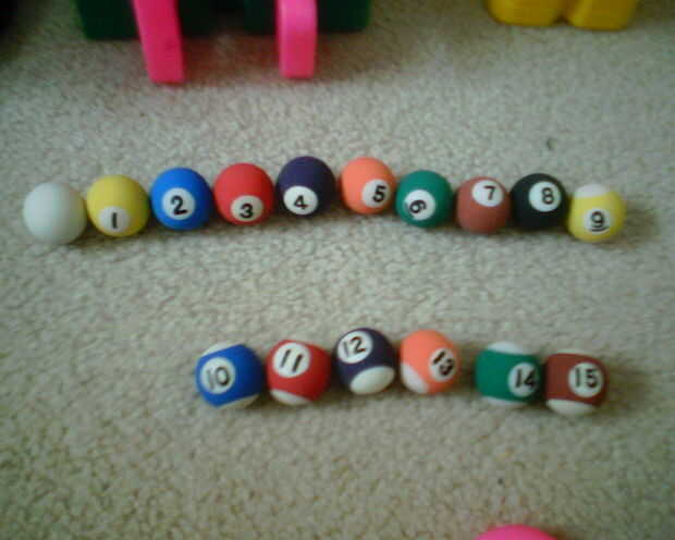 me encanta la piscina y todo lo relacionado con la piscina. Y por eso hice esto! Me volví una mesa de billar de juguete de los niños en un reloj de pared, usando las bolas como los números que indica la hora. ¿Por qué no jugarlo en su lugar? También