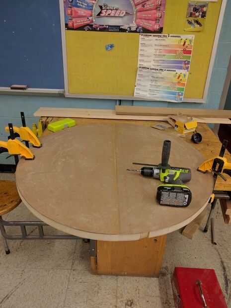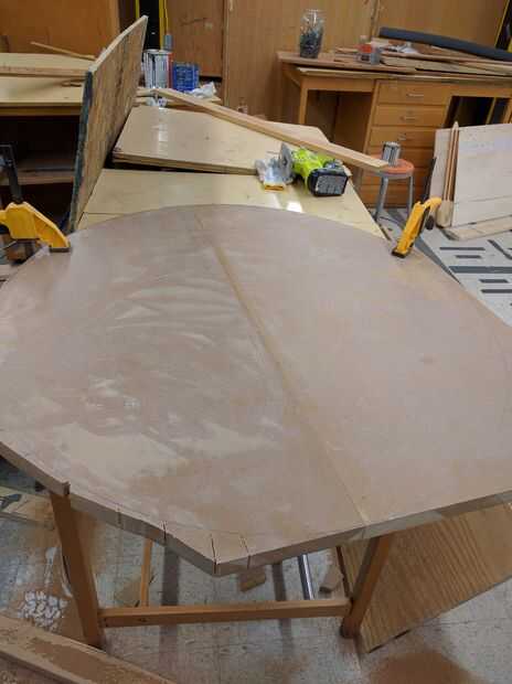 Este paso es el más lento y lo que creo que es la parte más difícil del proyecto. Después de trazar la forma de la elipse que quería cortar, tuve que averiguar cómo cortarlo hacia fuera. Lo que se necesita es una sierra de calar, una sierra circular de mano y una lijadora.