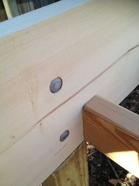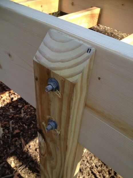 Taladre agujeros y fijar las patas a las tablas laterales con los pernos de carruaje.