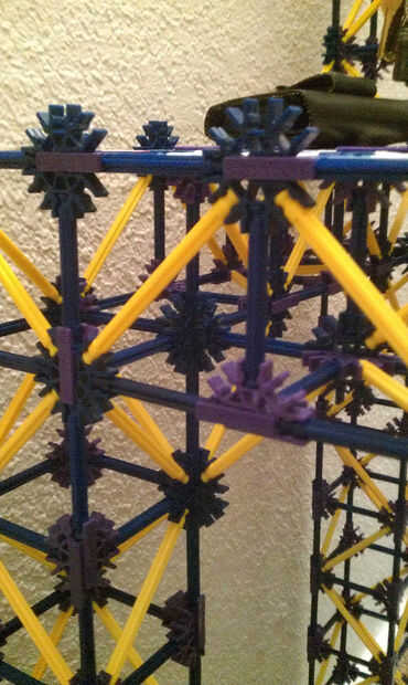 En este punto me había casi acaba la pieza 2 de los 90 a utilizar, así que usando la última pocos restantes, amplié el 2 'back' Torres a usar como un gancho y el otro para colgar las llaves de mi y otros bolsa reutilizable en.