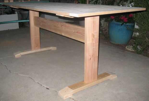 Primero probamos las patas hacia fuera para ver hasta qué punto deben ser desde el extremo de la mesa para que la gente puede sentarse cómodamente en el final. De aproximadamente un pie del extremo parecía adecuado, por lo que la camilla debe ser de 4 pies de largo y 6 pulgadas (la tapa de tabla es 6 pies de largo). 6 pulgadas permiten 1.5 pulgadas a cada lado a través de la mortaja de la pierna además de un extra 1,5 pulgadas sobresale. Normalmente, usaría para sujetar la camilla en un ángulo fijo en un agujero de ángulo en la parte, pero en nuestro caso, sólo vamos a añadir un peg falsa para hacerla lucir bien.