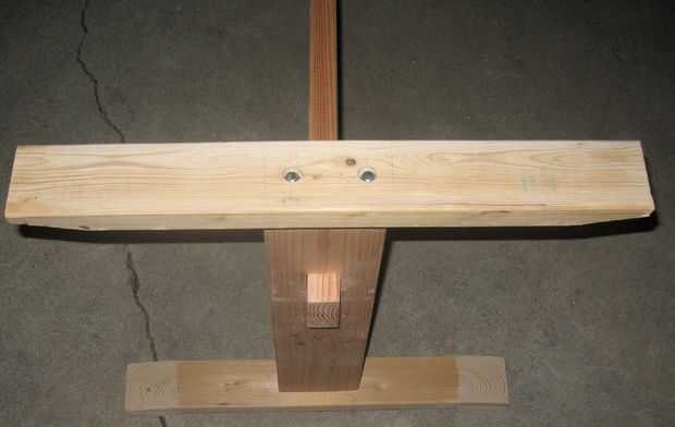 De la mortaja, mide 14 pulgadas de la parte superior de la base, luego puso la camilla sobre la y utiliza la espiga para hacer la parte superior de la mortaja. Debe ser aproximadamente de 3,5 pulgadas de alto. Mide en a los lados para permitir el 1.5 pulgadas para el tablero encajar. Para cortar la espiga, perforó un agujero de 3/4 de pulgada y utilizar una sierra de sable.