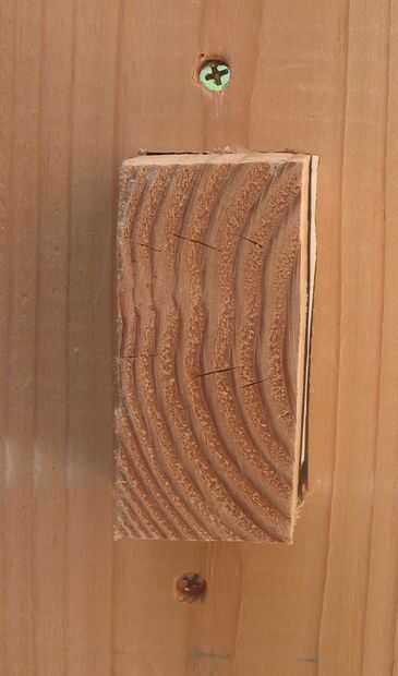 Para sujetar la camilla, se utilizan un par tornillos de drywall de 3 pulgadas de la pierna de la camilla justo por encima y por debajo de la mortaja. Nosotros les ángulo ligeramente en el centro de la camilla.