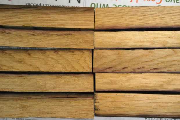 Debido al hecho de las caras interiores de las duelas son oscuras de ser quemado, cada pieza del tablero se delineará, lo creará un efecto visual de una curva ondulada. Si no hubiera estas franjas, todos las piezas parecerían como si fueran una sola pieza.