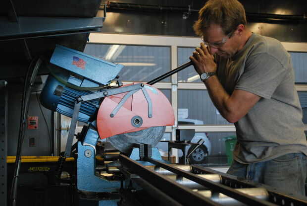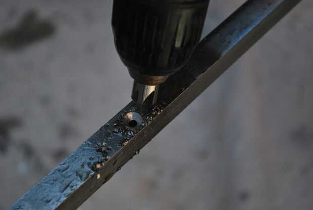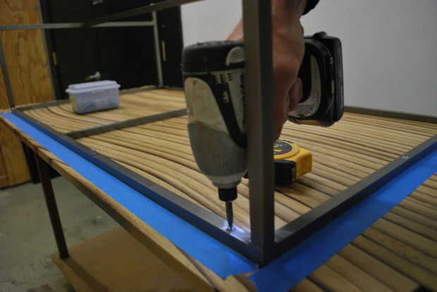 Corta y destacan el acero para fabricar la base. Elegí un acero cuadrado de 5/8" porque lo la base fuera delgado y nítido, pero con peso y estabilidad. Los tubos de acero habrían sido demasiado ligeros, y sus bordes demasiado redondos.