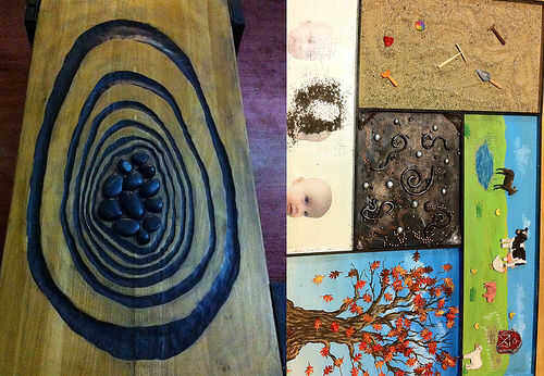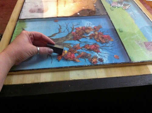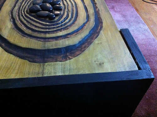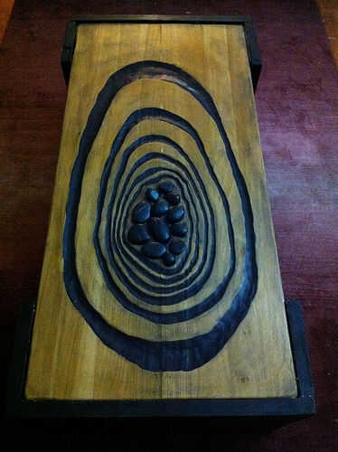 Esta tabla contiene clavos (para un propósito inusual), pero no están acostumbrados a cumplir nada. Toda la mesa se lleva a cabo junto con adhesivos.