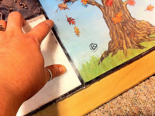 Presione el plástico y examinar todos los bordes de madera para asegurarse de que la cola forma un sello alrededor de cada sección. Coloque libros sobre el plástico para mantener todo en su lugar. Dejar durante la noche.