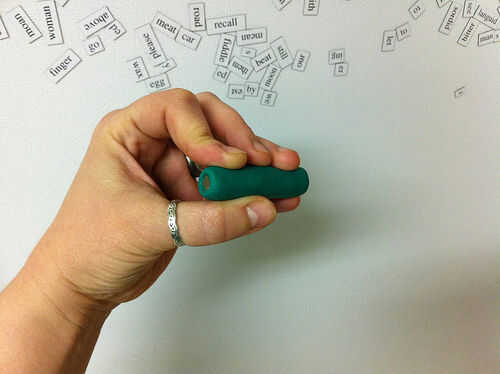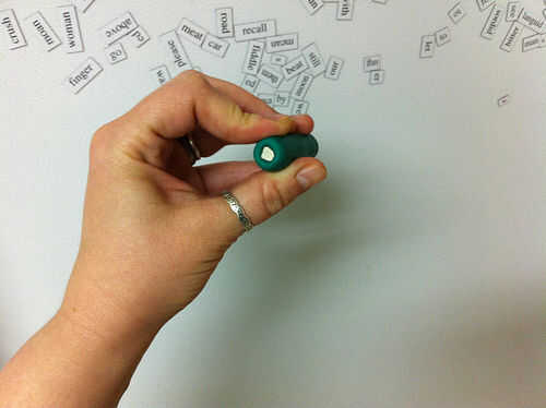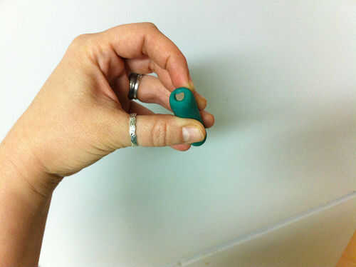Hice una varita corta, pequeño imán para pequeñas manos usando una pila de imanes y algunos Sugru. Apilan los imanes, envuelto con Sugru, empujado hacia la Sugru arriba un poco al final para que el imán en la punta era empotrar un poco (para evitar que se raye el plástico) y dejar curar durante la noche en un pedazo de plástico.