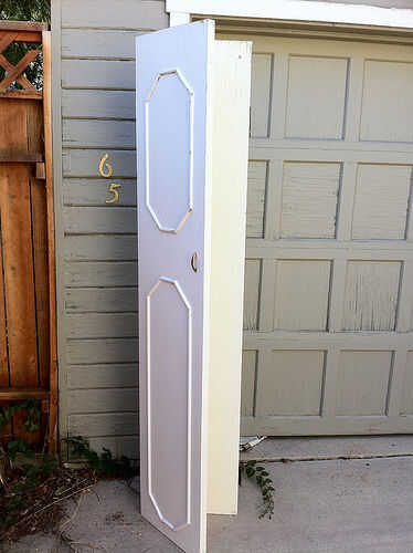 Elegí un diseño simple por lo que sólo tendría que preocuparse sobre dos piernas. Retiramos una puerta plegable de nuestro comedor hace un rato, y pensé que tendría piernas decentes para esta tabla. Quería asegurarse de que podríamos establecer simplemente la mesa en las piernas y no preocuparse de lo estable.