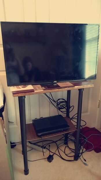 Bien el título lo dice todo; seguir adelante y terminar para arriba. Se puede utilizar contacto cemento, JB Weld Epoxy o lo que tengas mano que es lo suficientemente fuerte como para sujetar las patas de PVC. Entonces ¡ todo listo! Deje seca y luego tienes una gran mesa nueva.