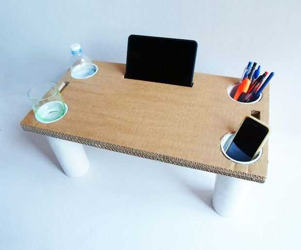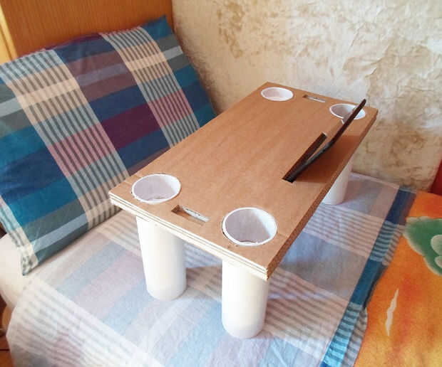 Finalmente se puede utilizar como un ordenador de mesa, un soporte de tabletas en la cama o sobre una mesa, y los tubos pueden contener todo lo que quieras! :)
