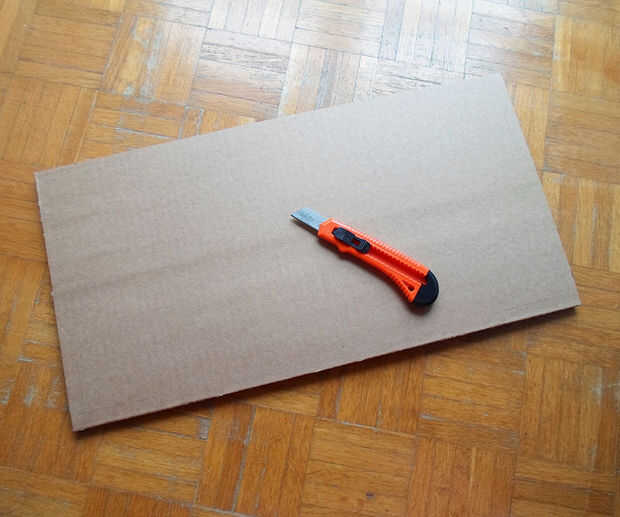 Dibujar un rectángulo sobre el trozo de cartón que mide 58 x 30 cm (22.83 x 11.81 pulgadas). Hice estos tamaños teniendo en cuenta lo grande que es mi laptop y cuánto espacio que habría tomado los tubos, pero usted puede ajustar su tamaño.