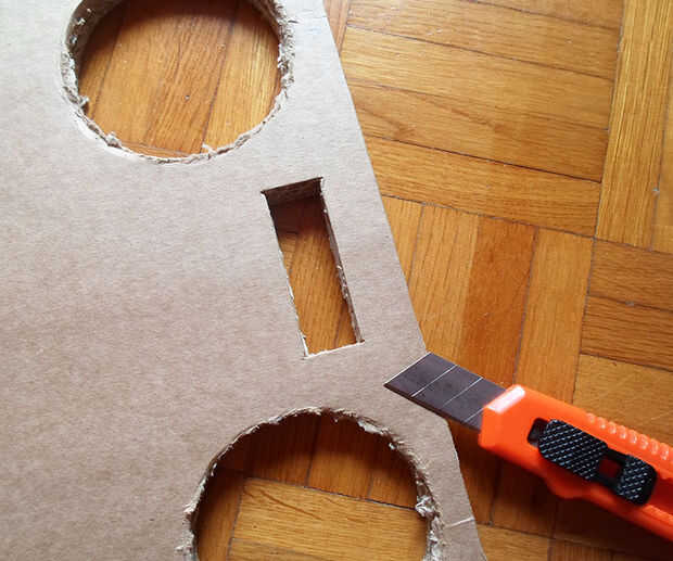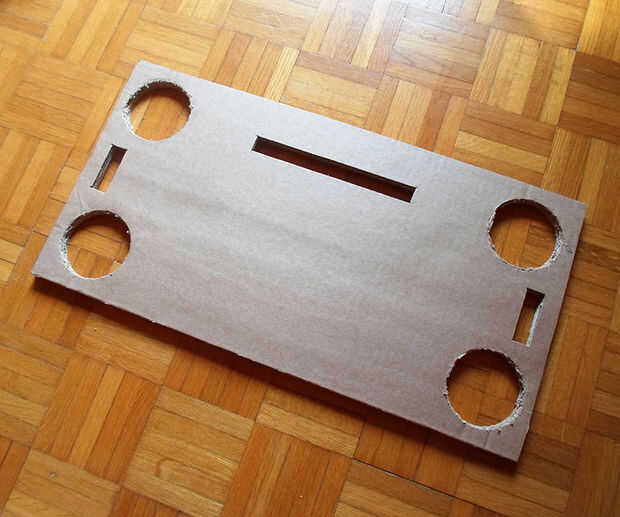Las manijas son 2 simple corte de las tiras de los 2 lados del rectángulo de cartón, por lo que fácilmente puede levantarlo y separarlo del resto de la tabla.