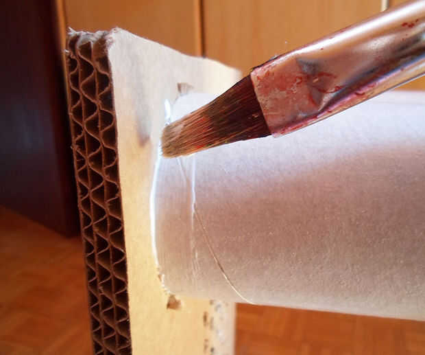 Aplique pegamento blanco alrededor de cada tubo, cerca de donde es el cartón.