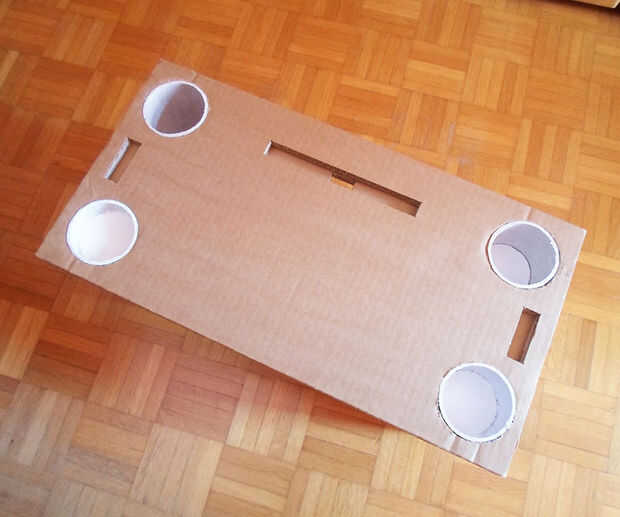 Ese espacio es realmente el espesor del otro rectángulo de cartón, así que coloque encima de la mesa también, pero recuerda no poner ninguÌ n pegamento esta vez!
