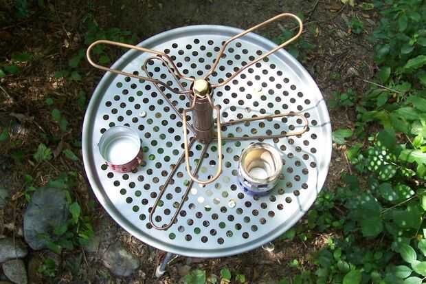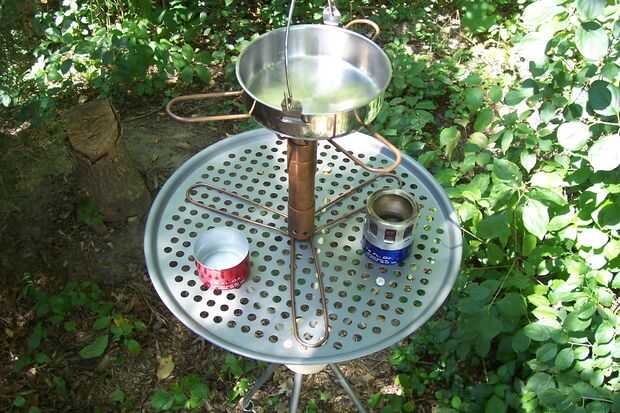 Aquí se muestra la tabla con dos estufas backpacking ligera. Es ideal para preparación de alimentos. y como un soporte de cocción y mesa de comer.