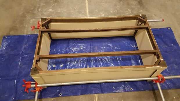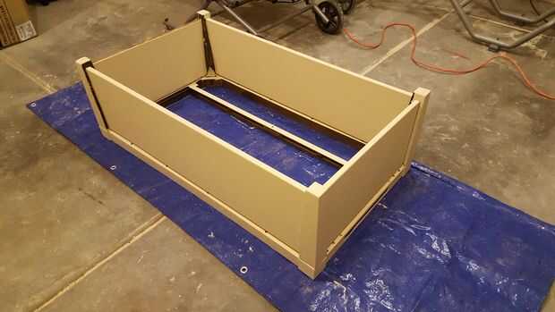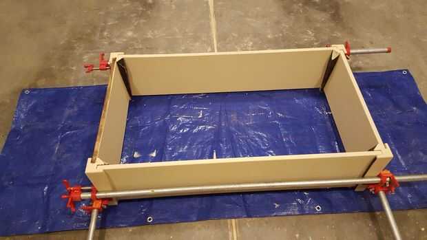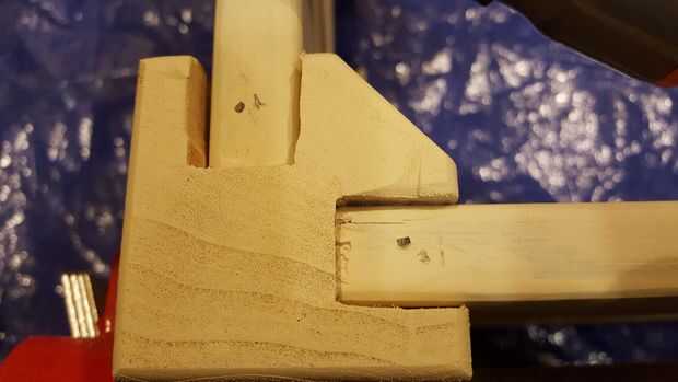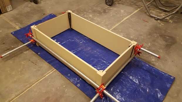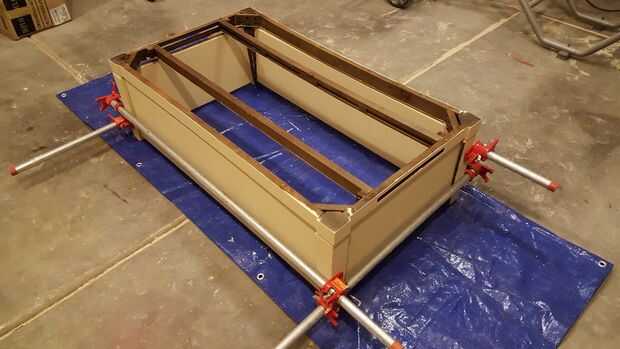 Me coloca la madera contrachapada y todo en su lugar había asegurado con abrazaderas. Colocar el la parte superior del marco encendidos y hacer ajustes menores, clavó todo juntos. Una clavadora con 1 pulgada, 18 ga clavos hicieron el trabajo.