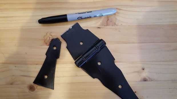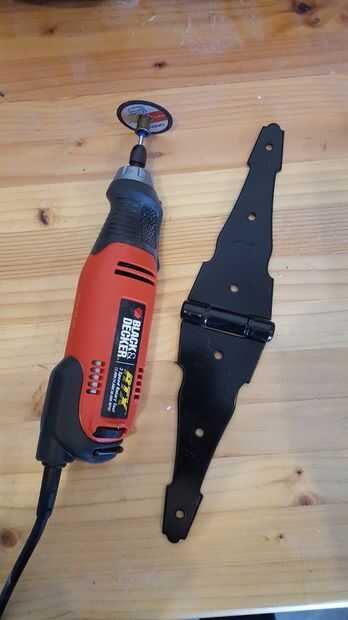 He marcado las bisagras y utiliza la herramienta rotatoria para hacer el corte. Luego usé el agujero de la pieza cortada para calmar mi taladro como taladró agujeros adicionales 2. Luego usé una amoladora para quitar cualquier borde filoso.