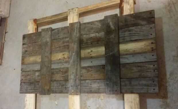 Corte cinco 40,5" largo piezas (cuatro 1"x 4"s y una de 1" x 6") y tres 19,5" de largo (1 "x 4" s) las piezas para crear la base de la mesa. Luego aplicar pegamento para madera en la parte posterior de los tres 19,5" pedazos y separarlos uniformemente. Luego instale 1.25" tornillos para madera para fijar las tablas directamente. Asegúrese y pretaladrar los agujeros antes de instalar los tornillos.