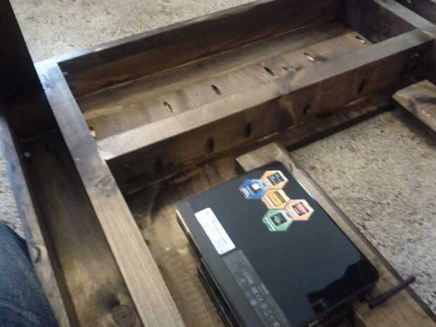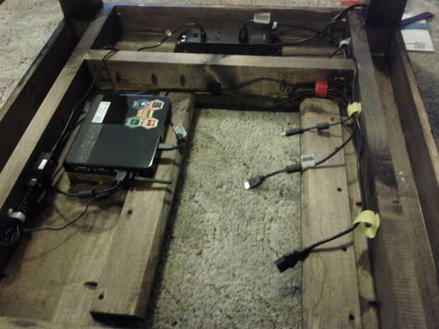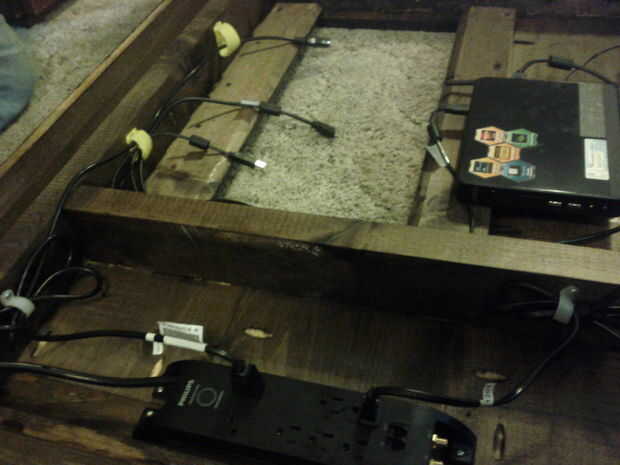 A continuación montara el equipo real y una barra de energía. Más o menos sabía donde quería el cable de alimentación que salen de mi mesa cuando se terminó por lo que había montado en mi barra de energía en una posición que sería mejor lograr esos resultados. A continuación enchufa todos los cables de mi ordenador y funcionó de una manera que pensé sería ocultarlos lo mejor cuando la tabla vertical.