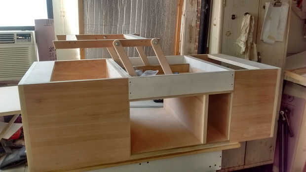 Después de que los soportes fueron establecidos y atornillados en, necesito hacer una estructura para conectar todas las ayudas y atornillar la tabla superior de debajo. (era muy simple)