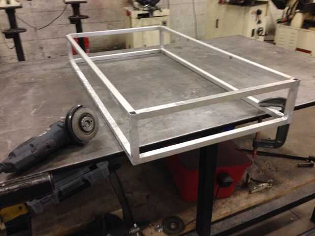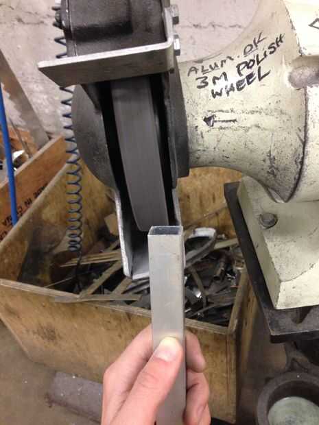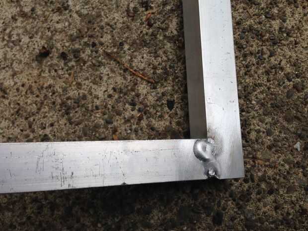 Una vez que tuve todas mis piezas cortadas, me aseguré que todo encajan correctamente, y todas las piezas eran exactamente la longitud correcta antes de comenzar a soldar. Las medidas tienen que ser mucho más precisos cuando se trabaja con el metal que de madera, no hay tanta flexibilidad en el material. Me había tomado un par de clases en TechShop SF de la soldadura, pero sólo ha practicado en el acero. Así que tomó una clase de soldadura de TIG de aluminio y terminado que necesita mucha práctica! El aluminio es un metal mucho más suave y se derrite a una temperatura más baja que el acero, por lo que es más difícil trabajar con. De todos modos, tardé mucho más de previsto, pero finalmente soldar todas las piezas del marco juntos! He rectificado todas las soldaduras hacia abajo y desde mi aluminio estaba toda rasguñada para arriba en que punto, decidí pulir el marco entero con amoladora y disco de grano bajo. Salió buscando muy bien después de todo!