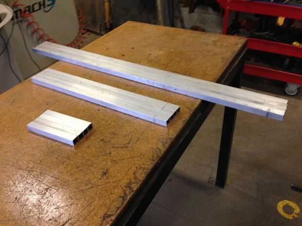 En primer lugar, he comprado aproximadamente 20 pies de aluminio cuadrado de 3/4" tubo de Bayshore metales en San Francisco. Medí todas las piezas necesita y corte en SF de TechShop, usar una chuleta de metal vistas. Tuve que moler todas las aristas que asegura que eran planas y lisas para el paso de soldadura.