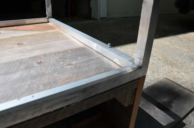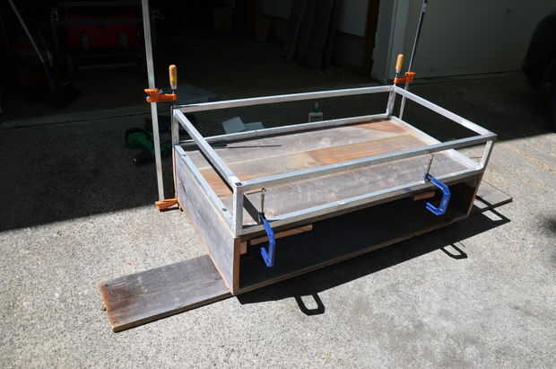 Después completar el marco de aluminio y la caja de madera, tenía que montar todo junto. Terminé usando la madera pegamento en cola el marco del metal a la madera ya que no tenía nada en mano, y salió gran. He añadido un par de tornillos por si acaso.