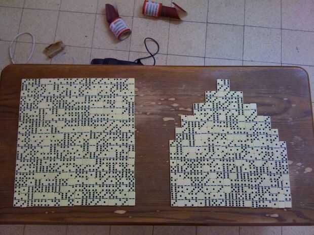 Les sugiero que jueguen con las fichas de dominó colocando antes de empezar a pegar. Esto ayuda a calcular cualquier problema futuro.