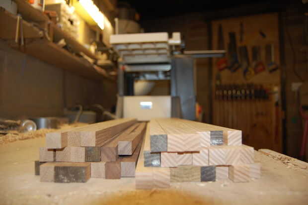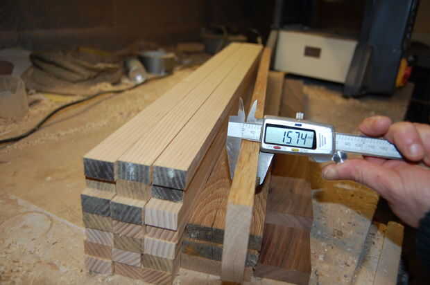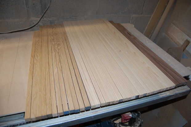 Comencé por recogiendo mi em bosque y rasga tiras alrededor de 17mm de ancho en la Sierra de mesa. Estos eran entonces thicknessed hasta justo por encima de 15mm en mi cepilladora/regruesadora.