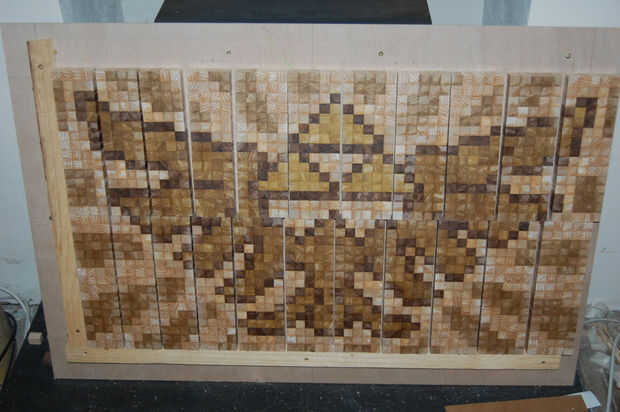 De fabricación de tablas para picar, descubrí que si pega más de 4 o 5 filas de error de un trozo colarse en y cosas iría wonky más adelante. Así pues, rompí el diseño en trozos cuadrados y pegados juntos más adelante.
