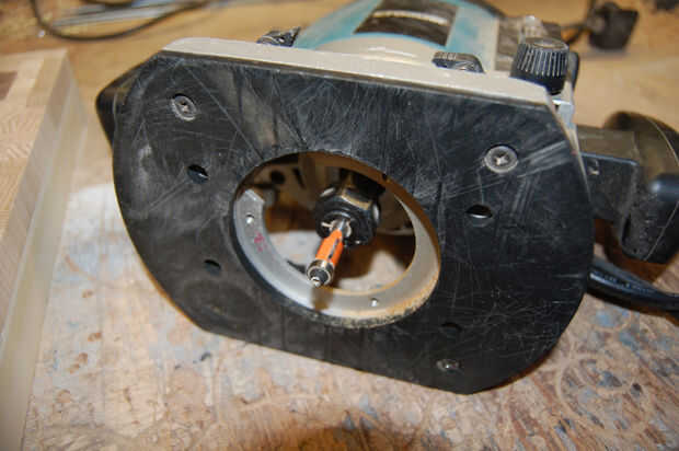 Una vez que la superficie es relativamente lisa corté el borde para que coincida con la superficie de apoyo de contrachapado y cedro con una plantillas en mi router.