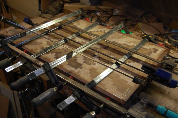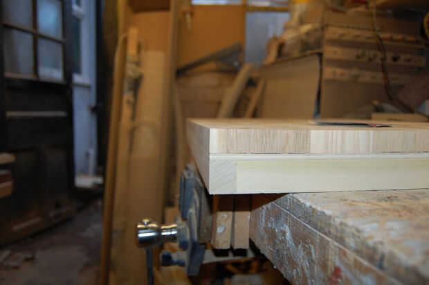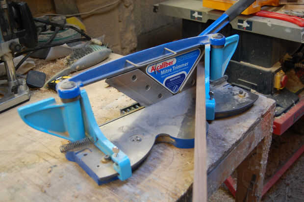 El borde se hizo con madera de nogal, thicknessed a 18mm de espesor. Corte a la longitud y cortó las Mitras con un trimmer de mitre. Estos estaban pegados con pegamento de Resintite (similar al formaldehído de la urea) y algunas abrazaderas.