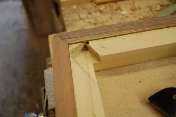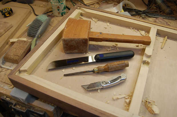 Para sujetar las piernas corté los zapatos en el marco de cedro con cincel, el cuchillo y la sierra tirón. Yo iba a la espiga de ellos pero se sentía demasiado por la cantidad de trabajo extra.