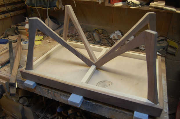 Para hacerlos sólidos hice algunas camillas de nuez que se une con a través de espigas. Estas fueron cortadas para caber por lo que no puedo darle una dimensión me temo.