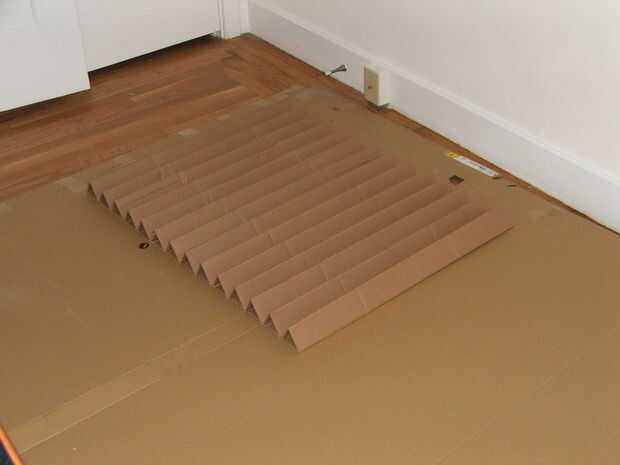 Van a pegar los tubos del paso anterior perpendicularmente a las costillas del cartón para la parte superior. Dejar algunos cartulina extra alrededor de los bordes, porque vamos a envolver el cartón alrededor de los bordes para acabar con. Pegar las piezas con la cara gruesa doble hacia abajo y justo a tope hasta uno con el otro.