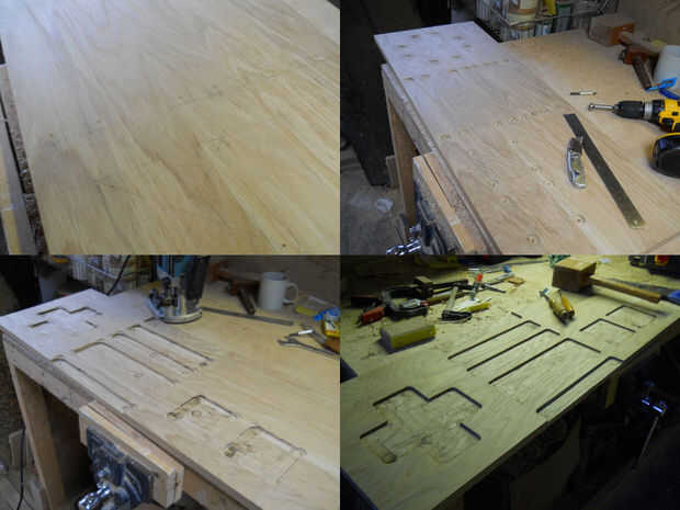 Entonces saqué la mayor parte con mi router a una profundidad de 4mm. El resto fue tomado hacia fuera con cincel y martillo.