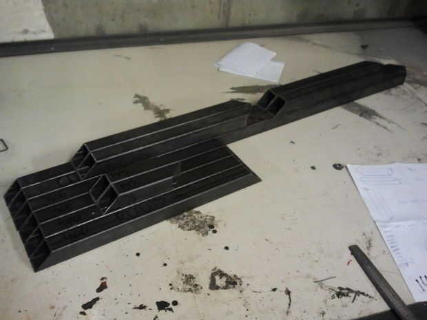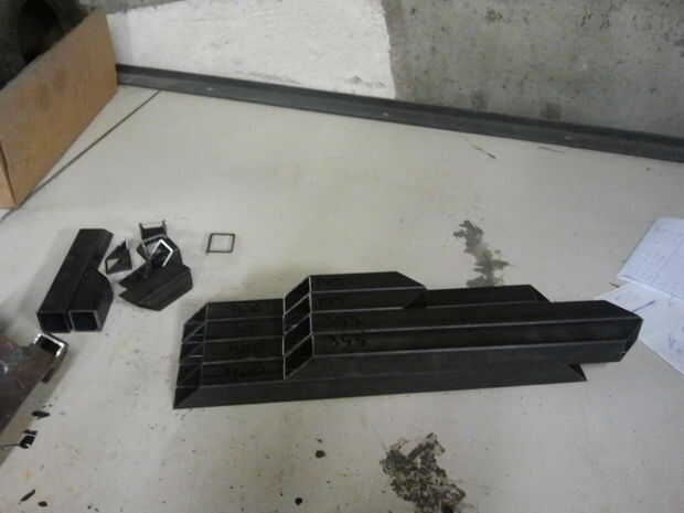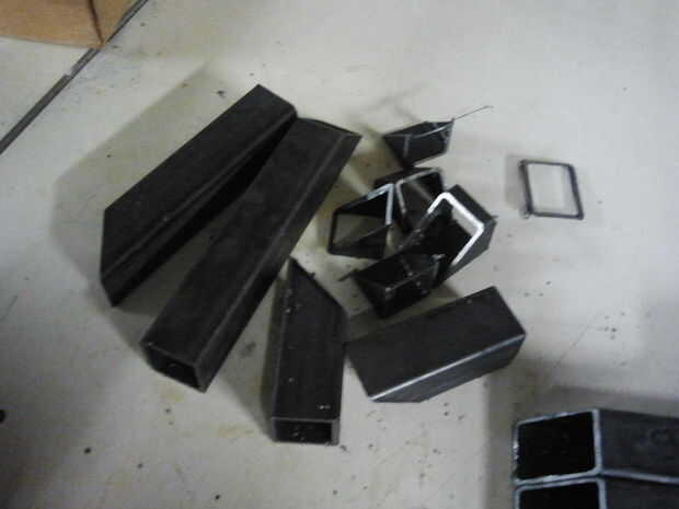 Como le dije en la sección de materiales, el corte de tubo de acero me dio casi problemas. Con unos cálculos que logró que todas las piezas deseadas del material tenía. No olvide medir todas las piezas en el medio para asegurarse de que estás haciendo lo correcto. También no cometer errores en el corte de los ángulos en la dirección correcta porque son de dos piezas 'asimismo' eachothers reflejo. Cuando ajuste el ángulo correcto de su sierra de ingletes, pequeñas desviaciones pueden corregirse durante la soldadura.