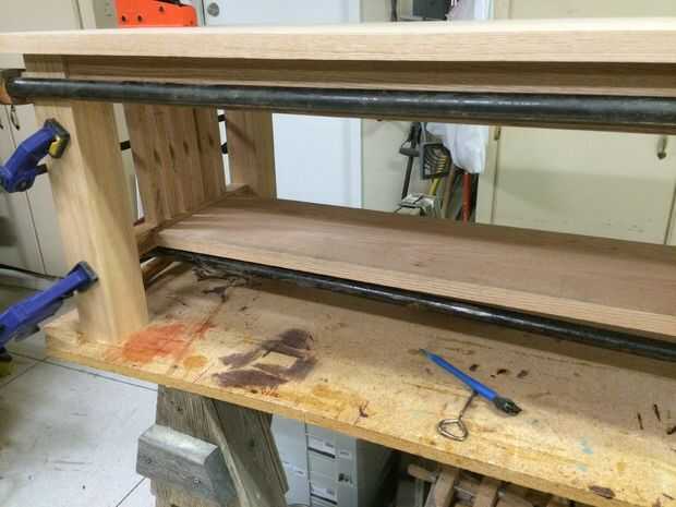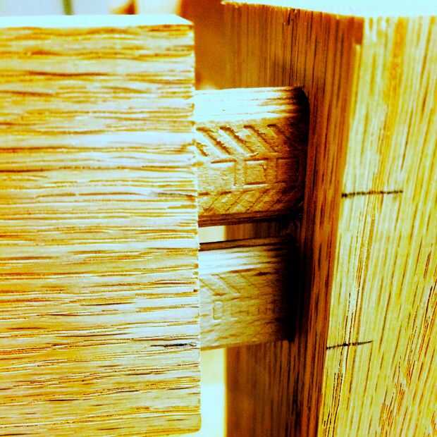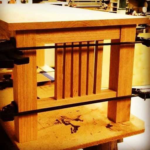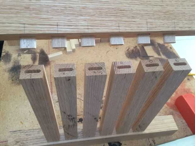 Usé mi fresadora de espigas Domino para unir todas las piezas. Es una forma muy rápida a hacer la mortaja y espiga carpintería, conocido como espiga floja. También se trabajará tradicional mortaja y espigas o tornillos de agujero de bolsillo. Asegúrese de agregar el pegamento y un montón de pinzas y todo lo permiten establecer durante la noche. (para las piezas verticales la brecha es la mejor manera es hacer bloques e insertarlos en cola hasta 3/8") También uso un offset de 5-10mm en todas las conexiones de mi agregar a poca profundidad. Los rieles de la plataforma se encuentran 5mm en el borde exterior de las piernas por ejemplo.
