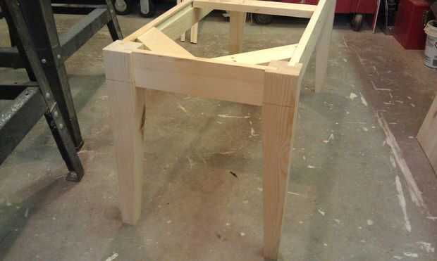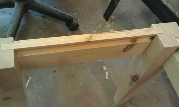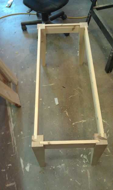 Los rieles se construyen desde la izquierda sobre la madera utilizada en la parte superior. tienen una ranura corriendo por el interior, para instalar unas piezas refuerza. los rieles se fije a las patas con una espiga que se encaja en las mortajas anteriores.