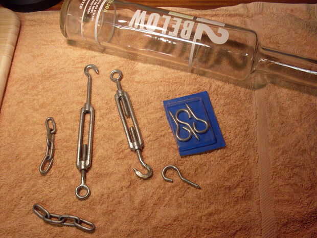 4 botellas de vidrio idénticos (usé 500 mL 42 debajo de botellas de vodka, son largas y delgadas)