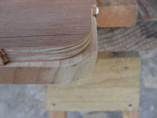 Poner en orden las esquinas con lija de grano 80 o 100. Mis esquinas eran absolutamente ásperas en esta etapa debido a la transición de veta a grano recto. Limpian bien con el papel de lija.