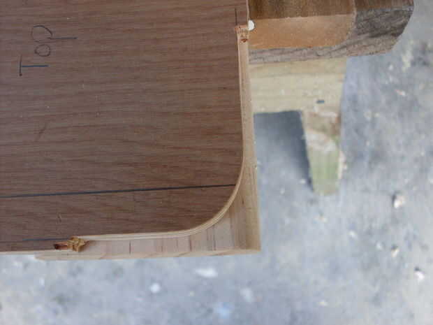Hice mis esquinas después de redondeo de los bordes de los tableros. Te recomiendo hacer estas esquinas antes de redondear los bordes.