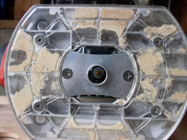 Las abrazaderas de la plantilla, alineado con los bordes de la Junta. Cruzan con el router, quitando el material poco a poco. Asegúrese de mover el router en la dirección correcta y mantenga el router nivel firmemente en la madera.