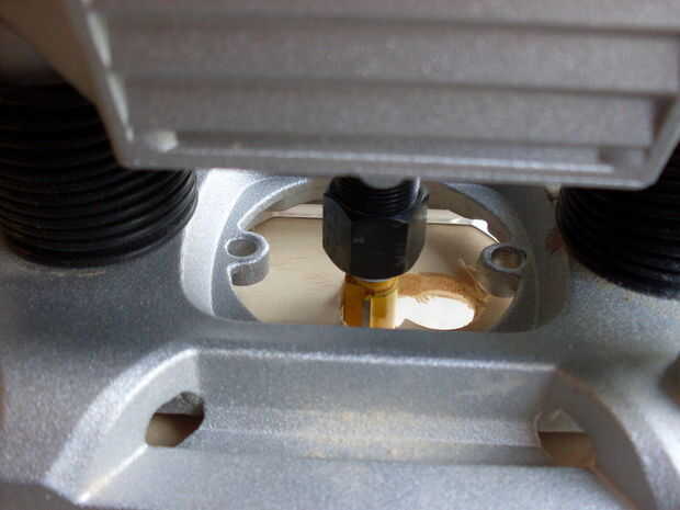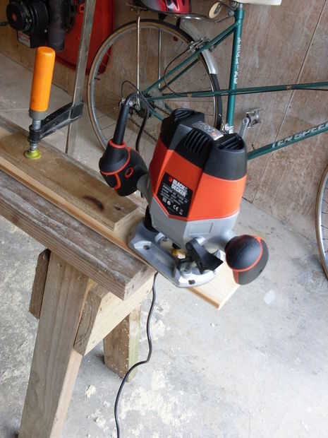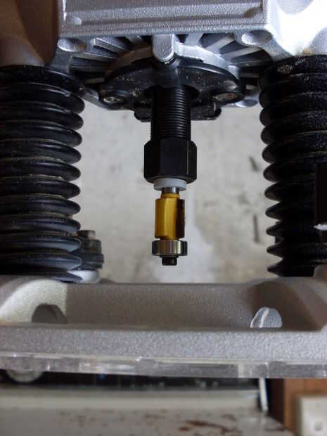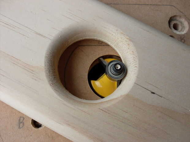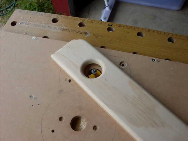 Fue capaz de hacer un buen agujero liso en un pedazo de desecho usando una hoja de sierra diferentes y utiliza ese agujero como una plantilla para mi router. Esto implica el uso del metal accesorio de plantilla siguientes para guiar la rebajadora.